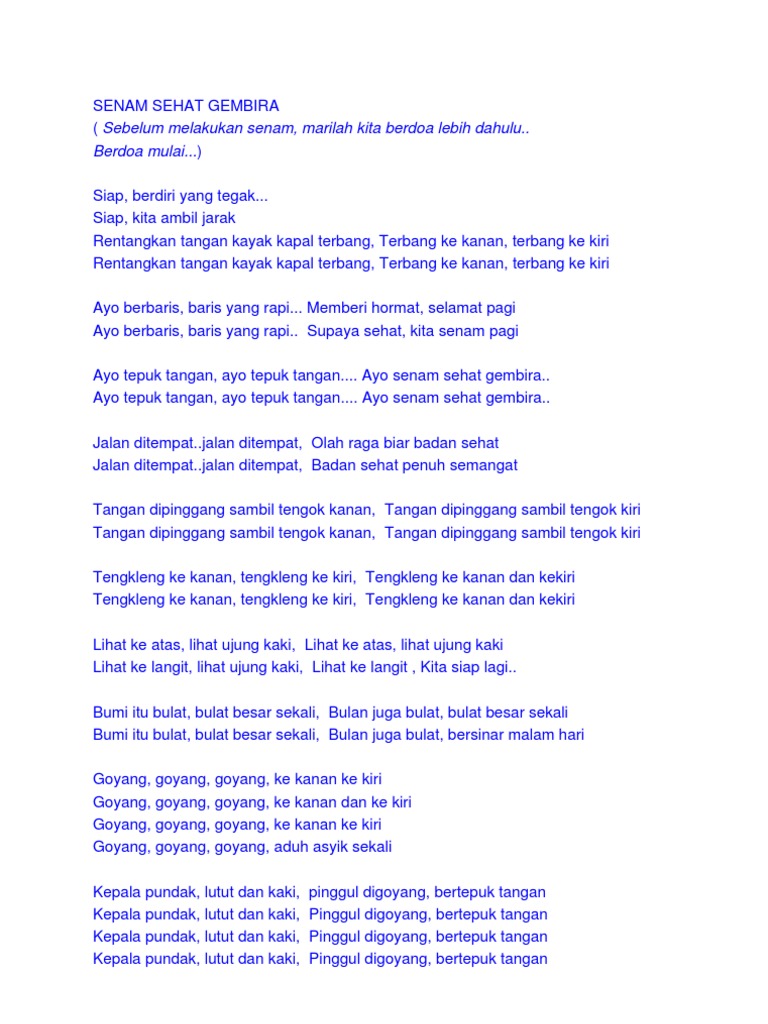 Lirik Senam Sehat Gembira Docx Document