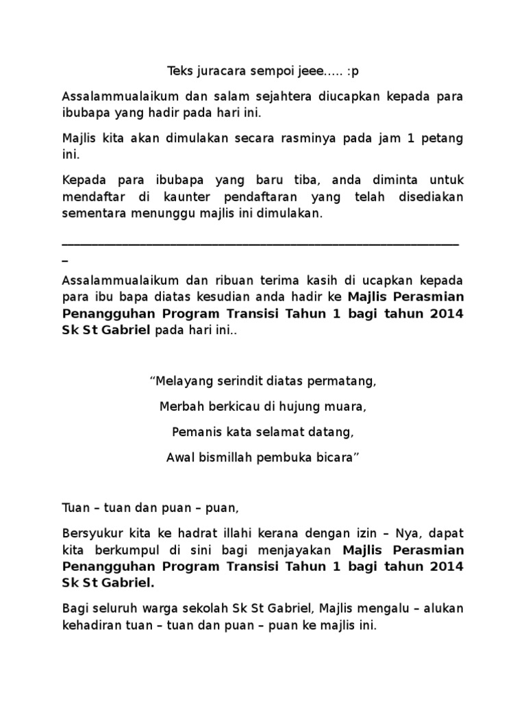 Documents Similar To Contoh Teks Ucapan Ringkas. 24 OKTOBER 2014 Assalamualaikum WBT 1. To find out more complete and clear information or images you can.