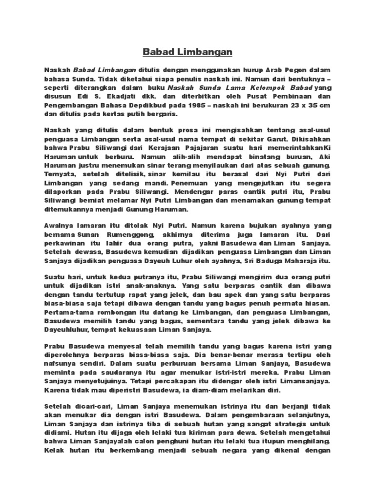 Contoh Cerita Babad Memakai Bahasa Sunda Dan Indonesia Brainly Co Id