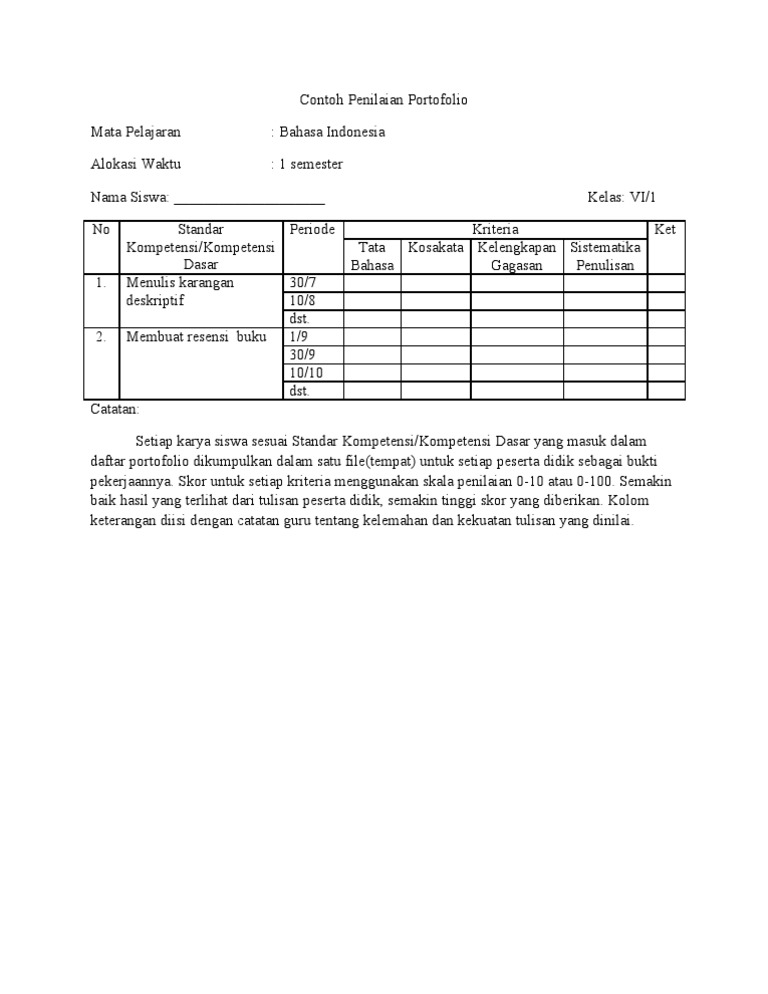 Download Format Penilaian Portofolio Siswa Mata Pelajaran