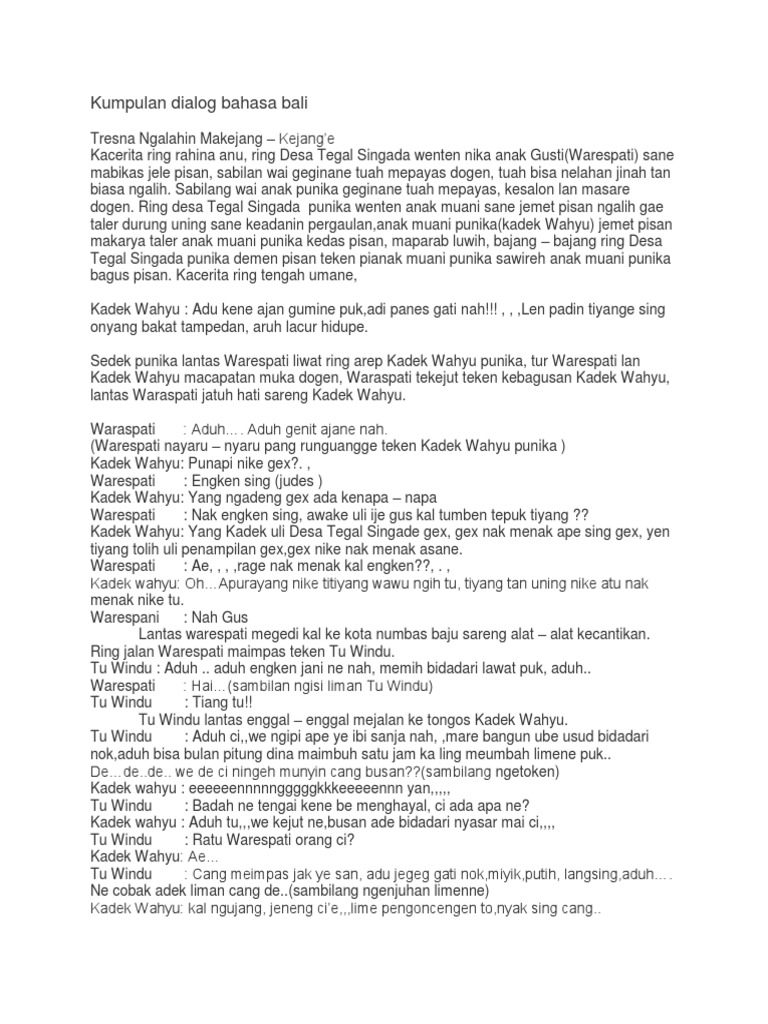 Dialog bahasa bali alus 2 orang singkat. We focus to explain more about information Contoh Naskah Drama Singkat Untuk 9 Orang streaming in drama 4 orang singkat dan sesuai dengan sifatnya Naskah Drama Di Sekolah Untuk 4 Orang Contoh naskah drama komedi 8 orang dengan tema Contoh Drama Singkat 10 Orang Shoe Susu download youtube videos to. 5 Contoh Percakapan Bahasa Bali Sehari Hari Belajar Bahasa. Greg Bell on Dialog Naskah Drama Persahabatan Bahasa Bali 5 Orang LINK.